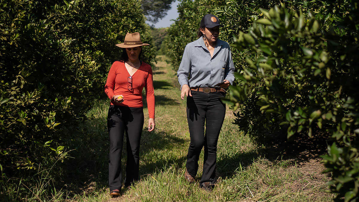La productora participa, desde abril de 2022, del proyecto “Fruto Resiliente: Fortaleciendo la producción sostenible de naranjas”. Su objetivo es apoyar la agricultura familiar en lo que se conoce como el Cinturón Citrícola Brasilero a través de la asistencia técnica y la extensión rural. Sandra ingresó al proyecto de la mano de otra mujer, que más tarde se convertiría en su fiel compañera: la técnica de campo Selma Coelho. “Fue la visita de Selma la que me dio seguridad y me motivó a participar del proyecto”, recuerda Sandra.