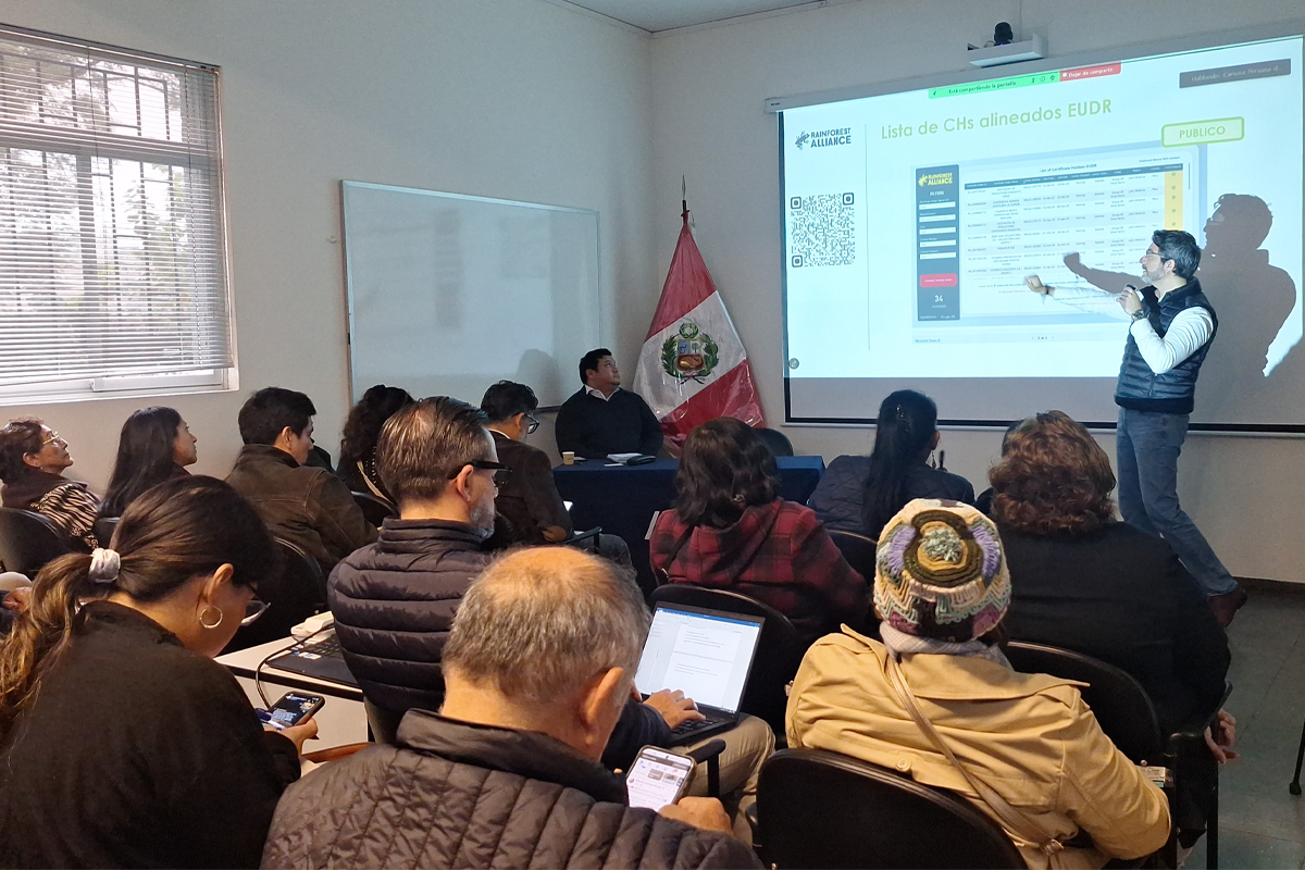 En este contexto, la primera sesión del taller, liderada por Rainforest Alliance y Enveritas, abordó los desafíos y las acciones necesarias para el cumplimiento mediante estándares y mecanismos de verificación. En el diálogo se destacó que pese a la existencia de un alto potencial de cumplimiento en el sector, la dispersión de exportadores de café incide en un avance más lento, lo que podría significar que un porcentaje de ellos no logre cumplir con los requisitos a tiempo. Asimismo, se mencionó el rol de ambas organizaciones en promover instrumentos de debida diligencia y trazabilidad en la producción nacional.