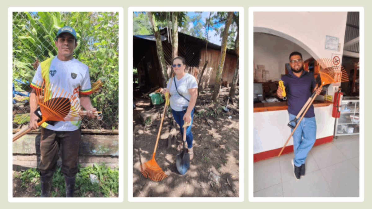 - Dotación de herramientas e insumos: Incentivos como herramientas agrícolas e insumos para la elaboración de bioinsumos permiten a los productores aplicar técnicas o prácticas de manejo agronómico climáticamente inteligente y de baja emisión de carbono que aprenden en las capacitaciones prácticas de campo.