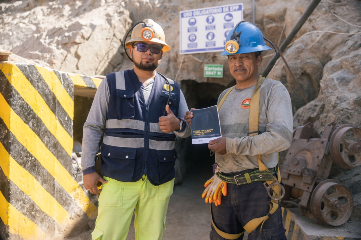 Como parte del acuerdo de buena convivencia entre Orex y los operadores MAPE, ambas partes acordaron una prioridad: todos los trabajadores debían contar con seguros de alto riesgo, como base del trabajo decente y complemento esencial a las constantes capacitaciones en seguridad y salud ocupacional.