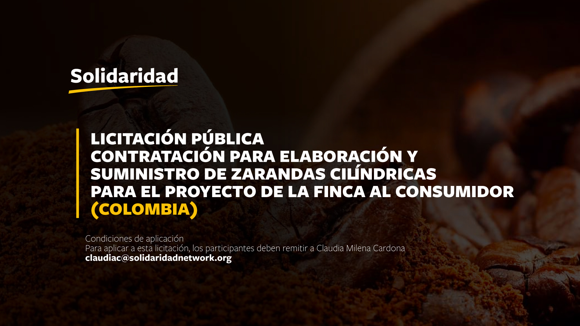 Para aplicar a esta licitación, los participantes deben remitir a Claudia Milena Cardona (claudiac@solidaridadnetwork.org), los siguientes documentos: